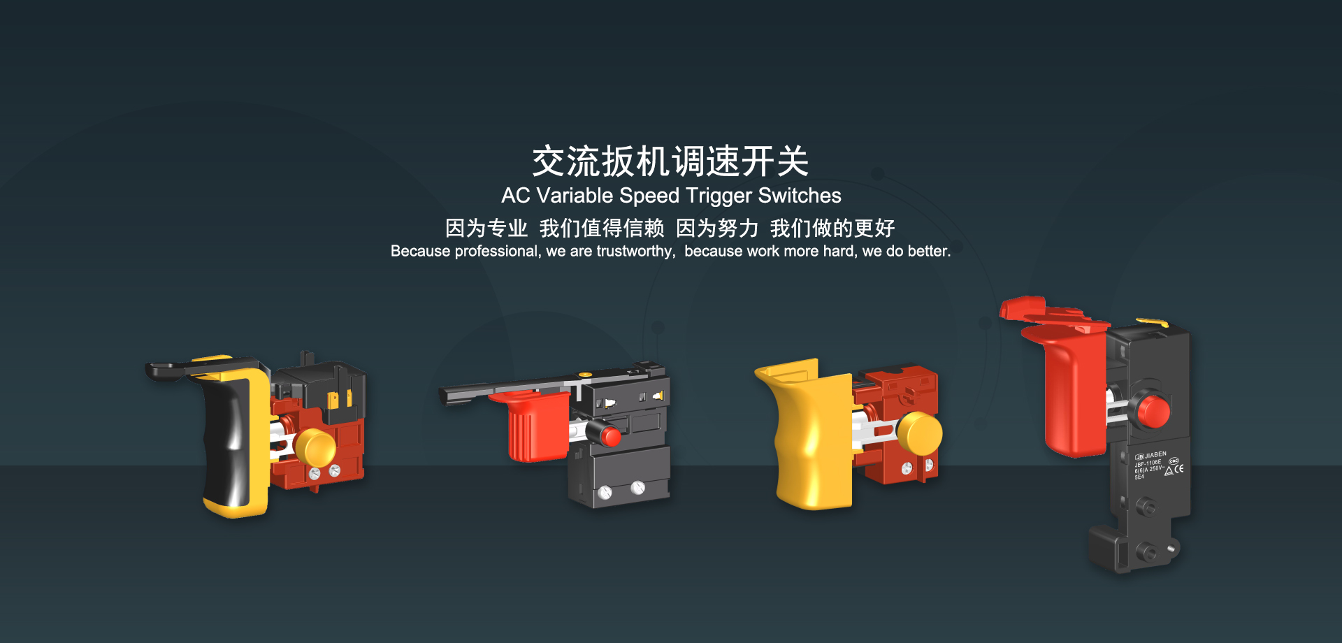 浙江佳奔電子有限公司始建于1986年,坐落于浙江省樂清市虹橋鎮(zhèn)東電子信息產(chǎn)業(yè)園內(nèi),現(xiàn)有職工700多人,資產(chǎn)總額超3億元。公司主要經(jīng)營“JIABEN”牌微動開關(guān)、蹺板開關(guān)、按鈕開關(guān)、扳機開關(guān)、調(diào)速開關(guān)和電位器開關(guān)等各類交、直流器具開關(guān)和各類交、直流線路板模塊等產(chǎn)品,主要應(yīng)用于交、直流電動工具、電動園林工具、清潔器具、家用電器和小型機床等行業(yè),是集產(chǎn)品設(shè)計、研發(fā)、制造、銷售和服務(wù)于一體的國家高新技術(shù)企業(yè)。JIABEN was founded in 1986, located in East Electronic Information Industry Park, Hongqiao Town, Yueqing City, Zhejiang Proviance, existing staff more than 700 peoples, more than 300 million RMB worth of assets. Company is mainly engaged in "JIABEN" brand Micro Switch, Rocker Switch, Push-button Switch, Trigger Switch, Speed Regulating Switch, Potentiometer Switch and other kinds of appliance switch and all kinds of AC or DC circuit board module, such as more than 100 series, 8000 kinds of models of products, mainly used in AC or DC Power-tools, Power Gardening Tools, Cleaning Appliances, Household Appliances and Small Machine Tool and other industries, is the collection product design, research and development, manufacturing, sales and service in one of the national high and new technology enterprise.